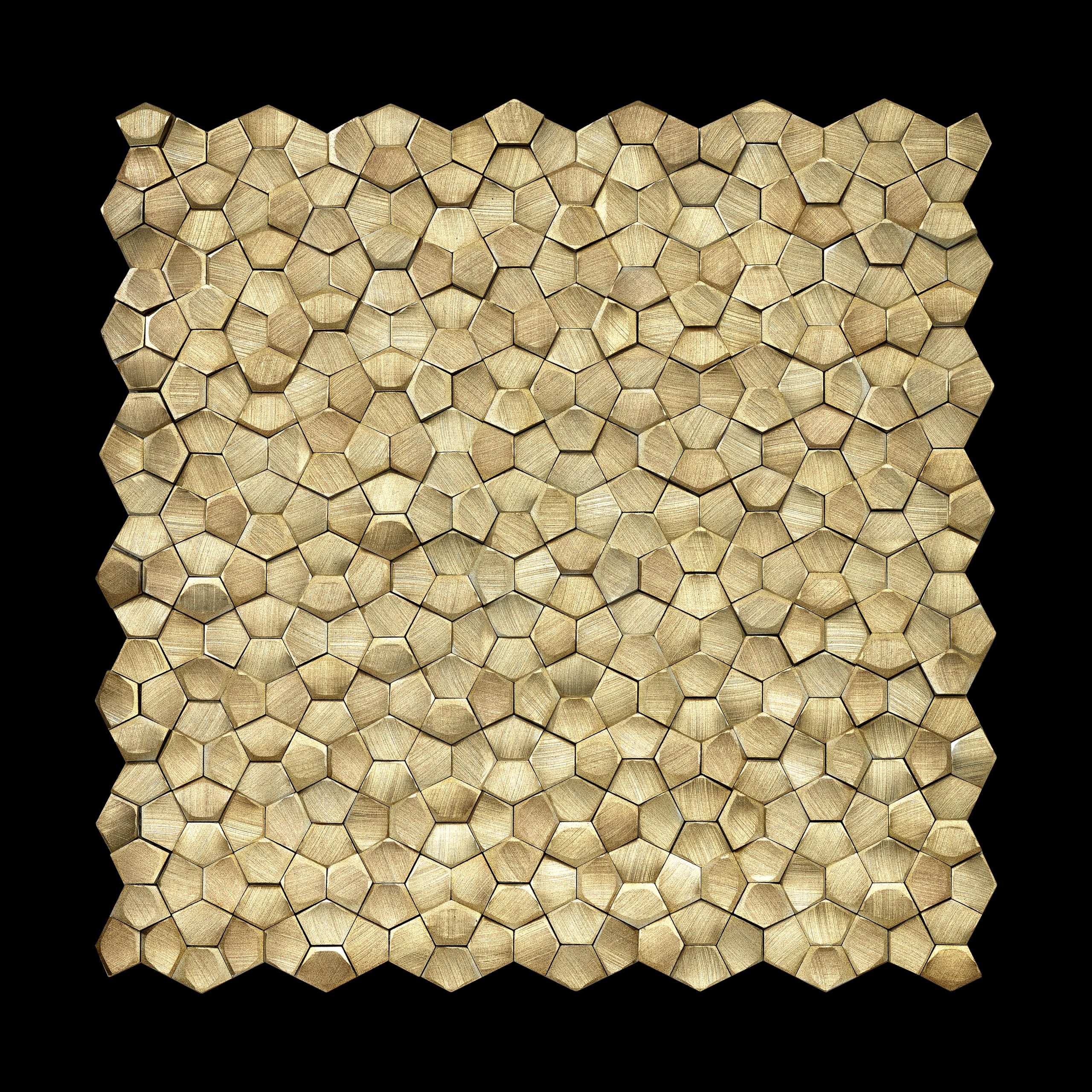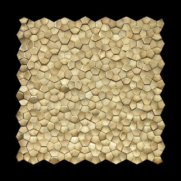 Multi level Rock Surface Solid Pentagon Aluminum mosaic- Matt Gold 11.25″ X 11.25″ X 1/8″-3/16″ = .88 SF PER SHEET