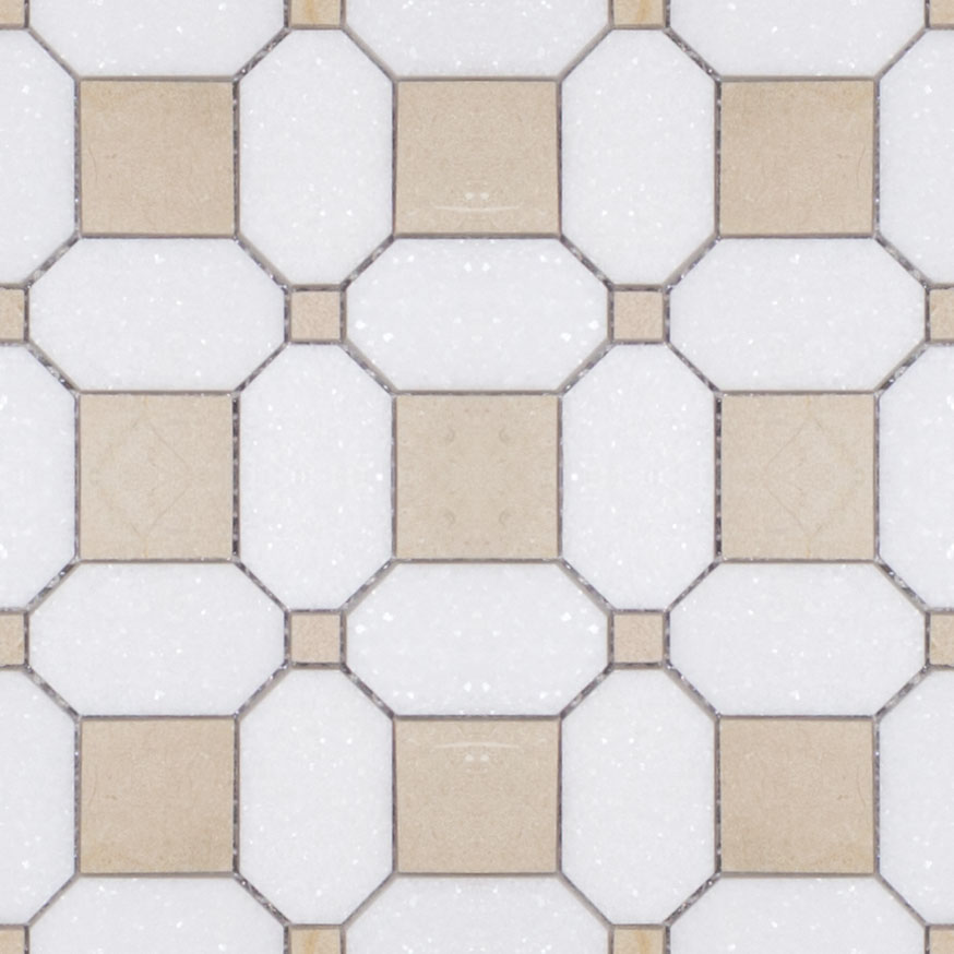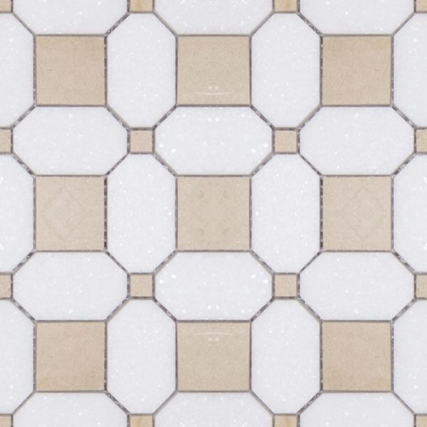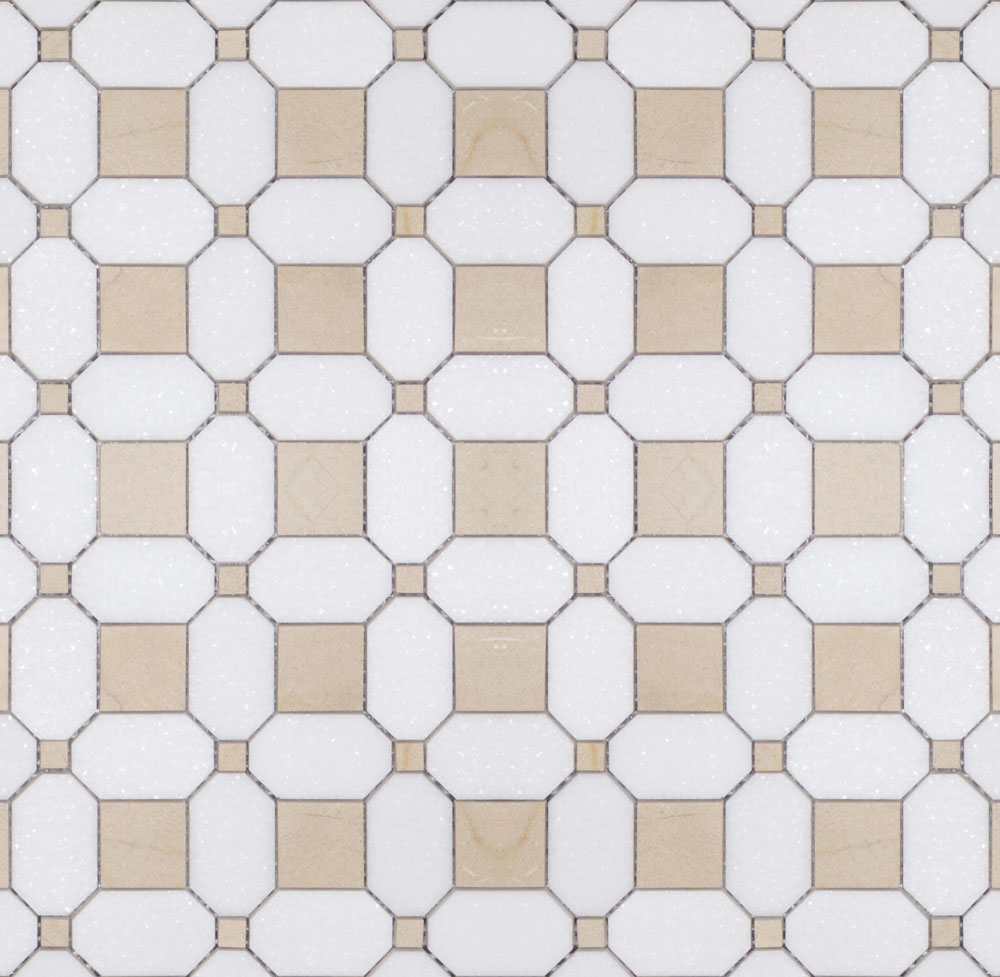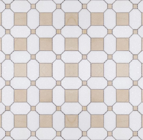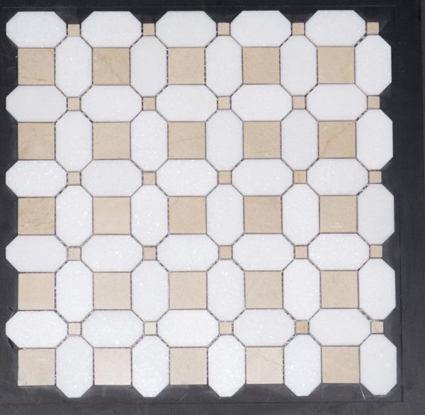 MB104 SQUARE&DOT THASSOS+CREMA MARFIL POLISHED. SHEET SIZE 12.20″X12.20″= 1.03SF PER PCS