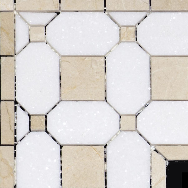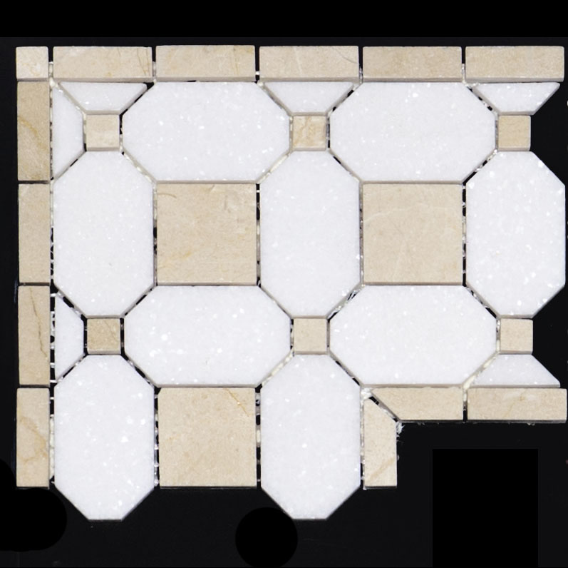 MB133 THASSOS + CREMA MARFIL POLISHED SQUARE & DOT CORNER 6 1/2″ X 5 1/4″