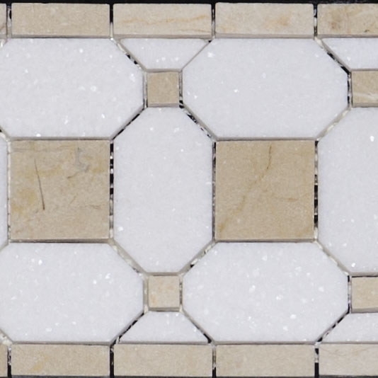 MB139 THASSOS + CREMA MARFIL SQUARE & DOT BORDER 4 1/2″ X 12 1/4″