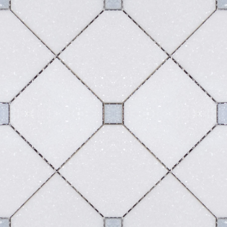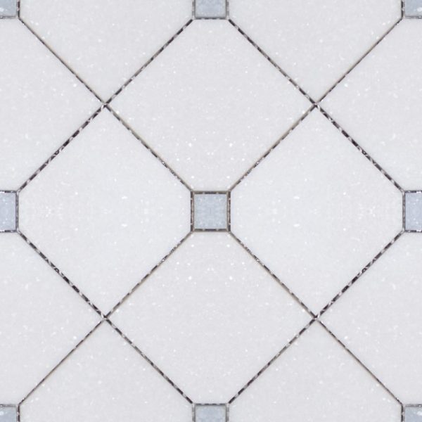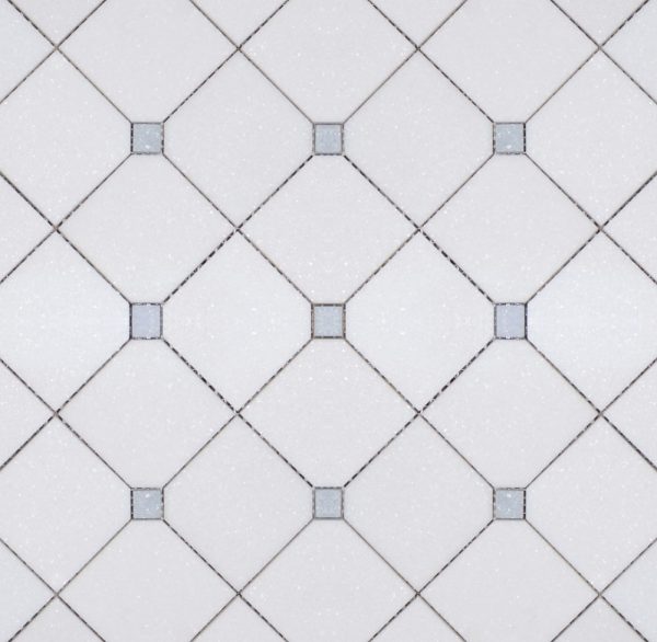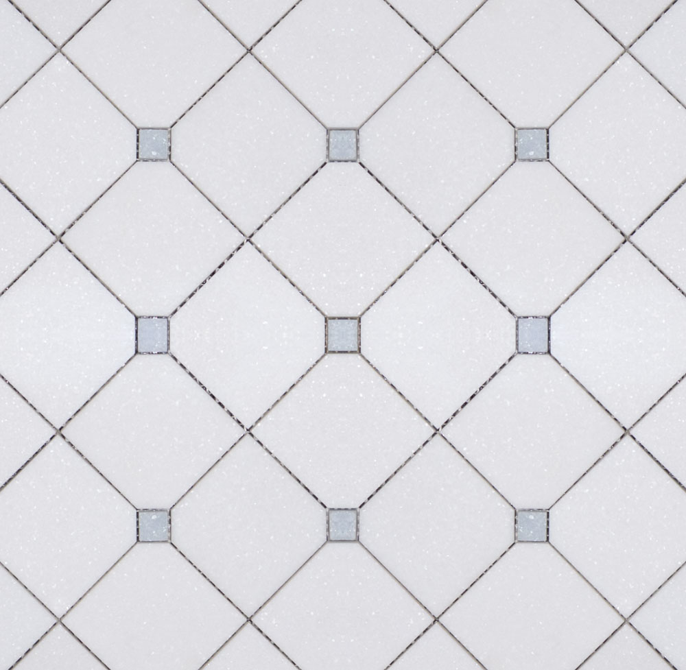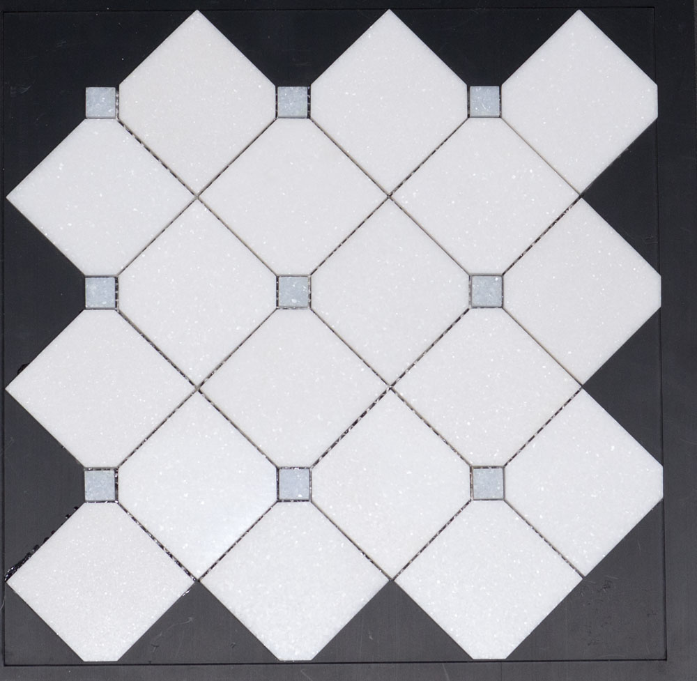 MB149 LARGE SQUARE THASSOS POLISHED WITH BLUE CELESTE POLISHED DOT SHEET SIZE 11.42″X 11.42″ = .90SF PER PCS SOLD BY THE PCS