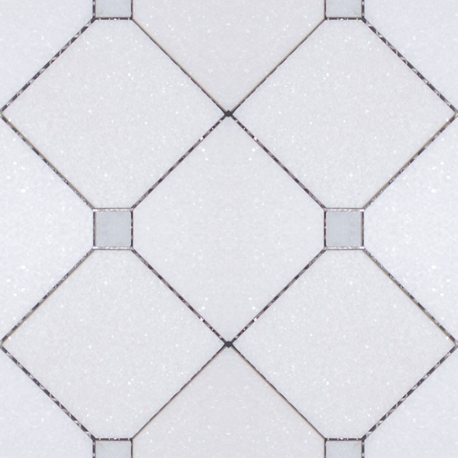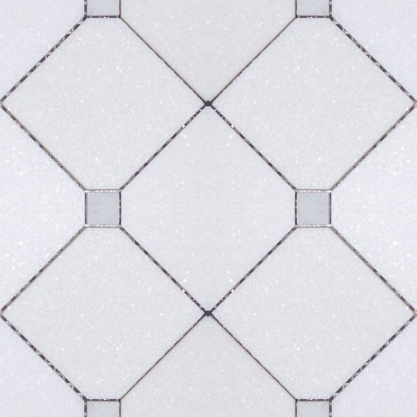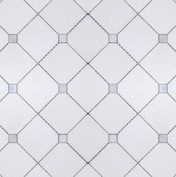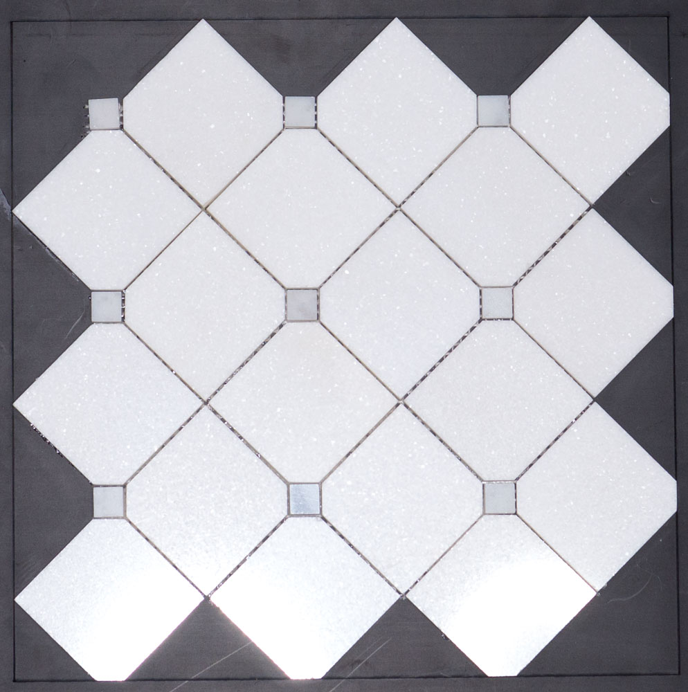MB152 LARGE SQUARE THASSOS POLISHED WITH POLISHED CARRARA DOT SHEET SIZE 11.42″X 11.42″ = .90SF PER PCS SOLD BY THE PCS