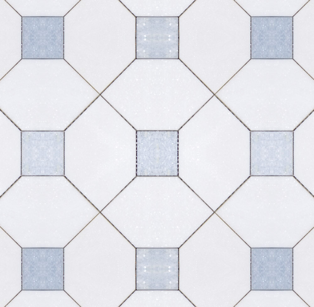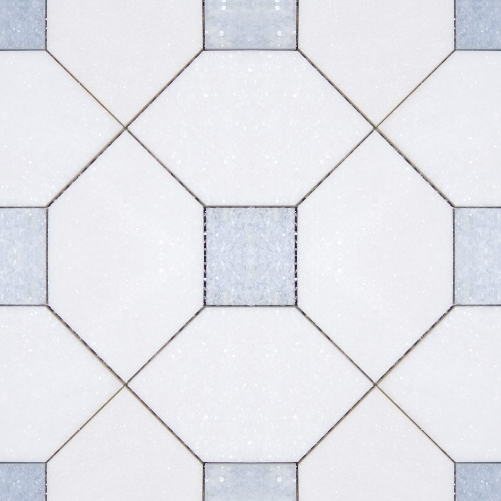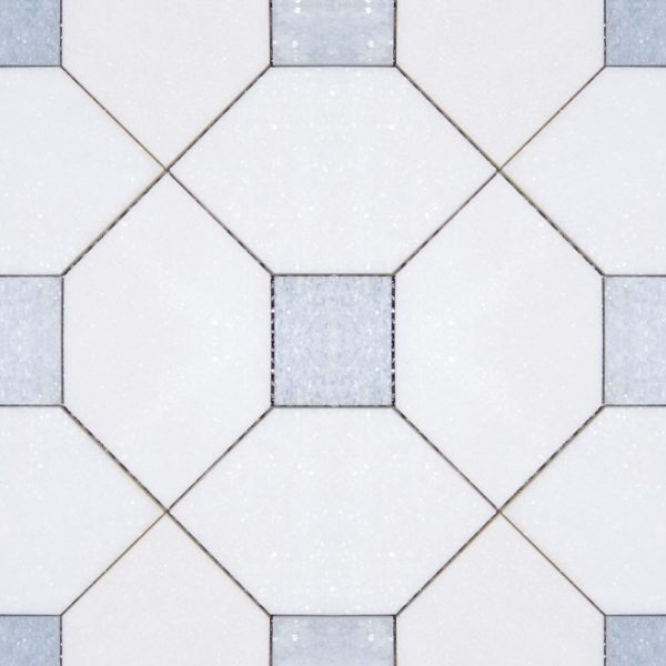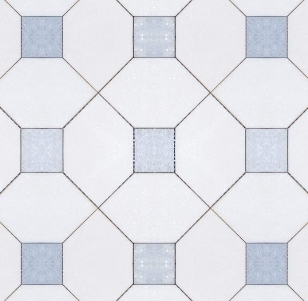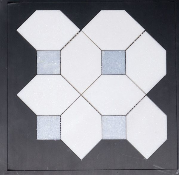 MB153 W SQUARE THASSOS POLISHED WITH BLUE CELESTE POLISHED DOT SHEET SIZE 10″X10″ =