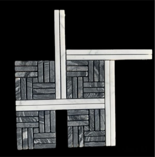 WOOD BLACK TUMBLED + CARRARA HONED .26 SF PER SHEET