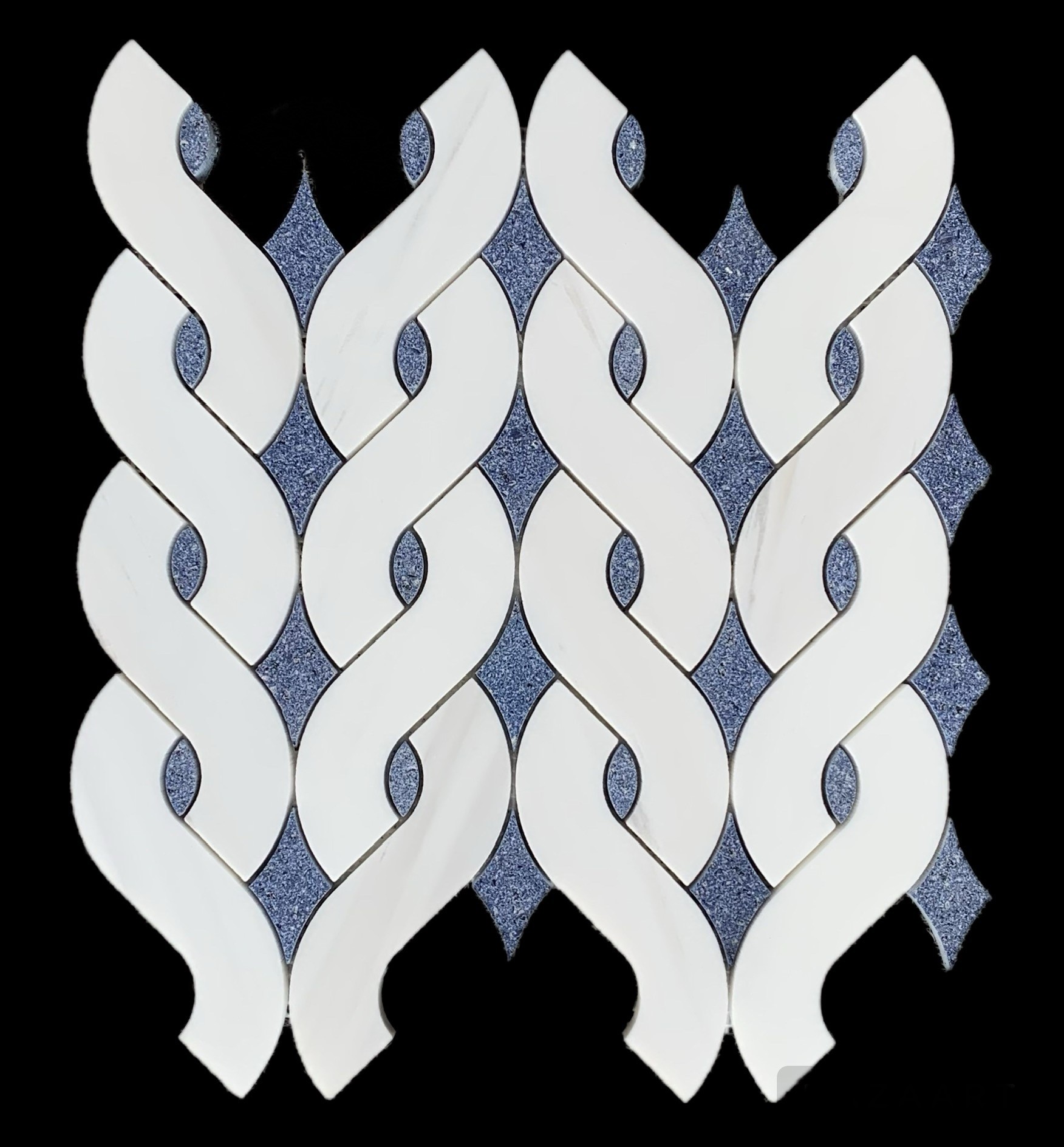 DOLOMITE POLISHED + QUARTZ DARK BLUE LEATHERED .75 SF PER SHEET