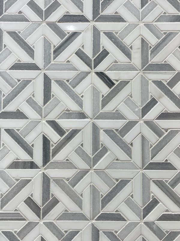 MB502 SMALL CHANTILLY WATERJET MOSAIC DOLOMITE + EQUATOR POLISHED 12.125″ X 12.125″X 3/8” = I.02 SF PER SHEET SOLD BY THE PCS