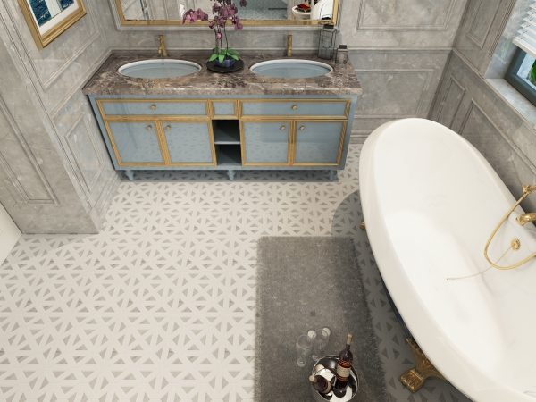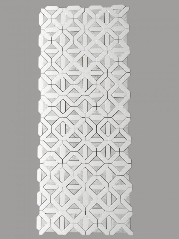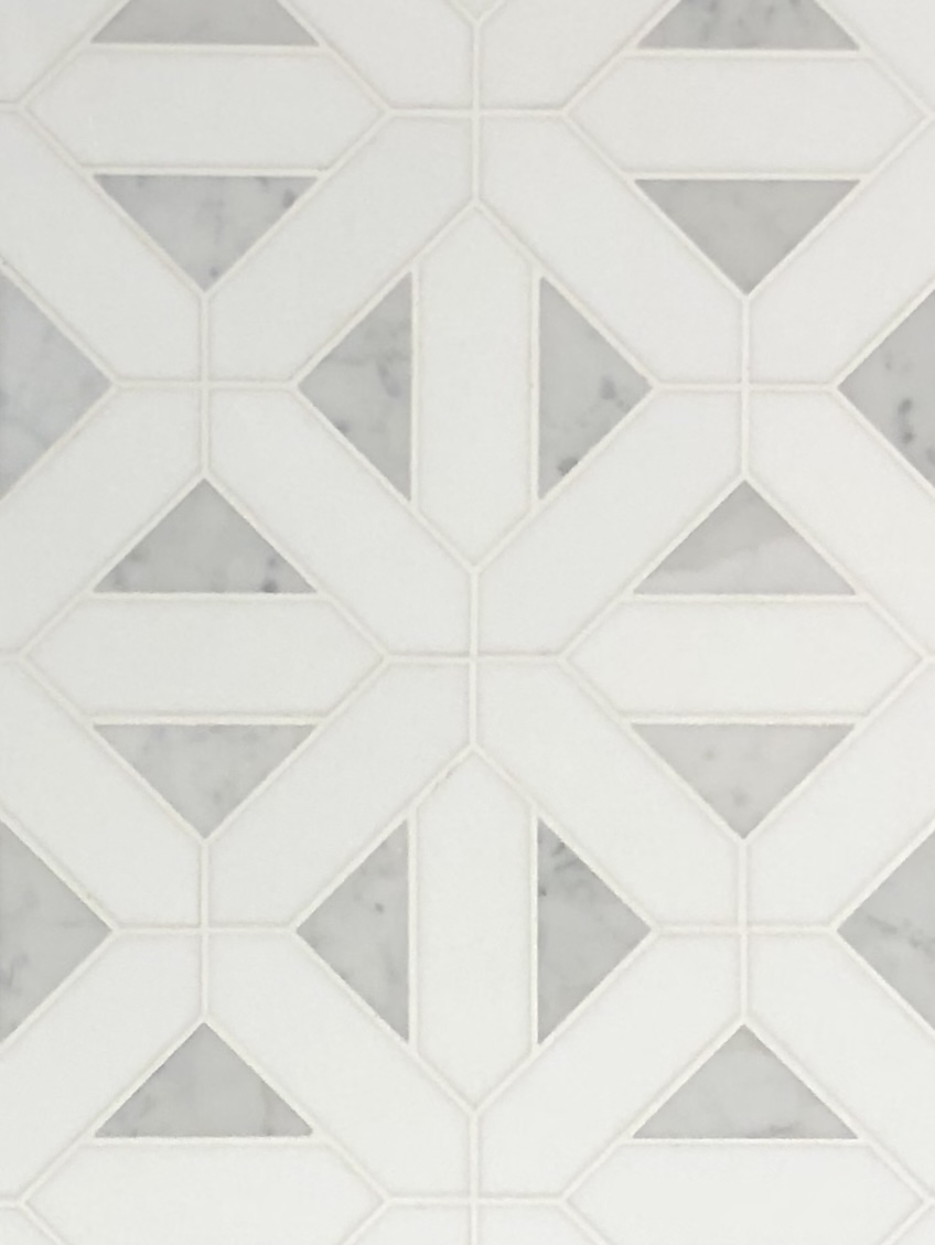MB503 CHANTILLY WATERJET MOSAIC POLISHED CRYSTALLIZED GLASS + BIANCO CARRARA 12”x12”x3/8” = I SF PER SHEET SOLD BY THE PCS