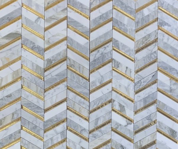 GOLDEN AGE CHEVRON STATUARIO & BLUETTE & GOLD GLASS