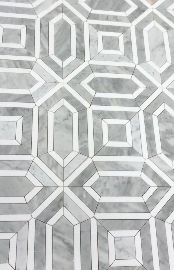 MB700 OASIS WATERJET MOSAIC CARRARA+THASSOS POLISHED 11.42″X11.42″ =.90SF PER PCS SOLD BY THE PCS