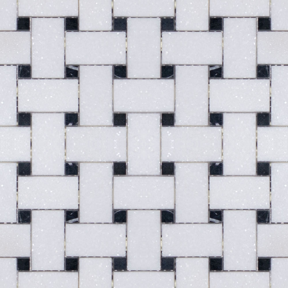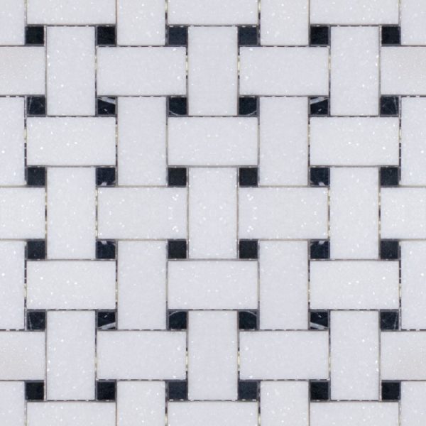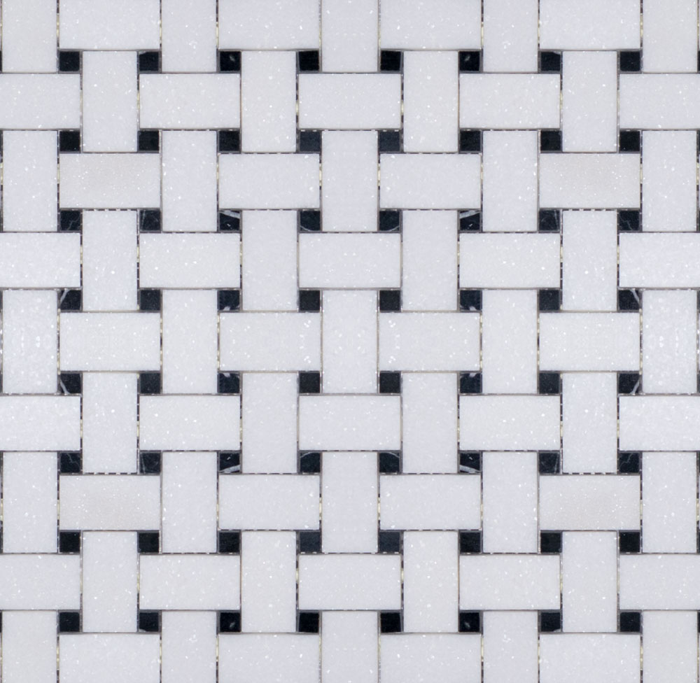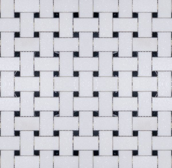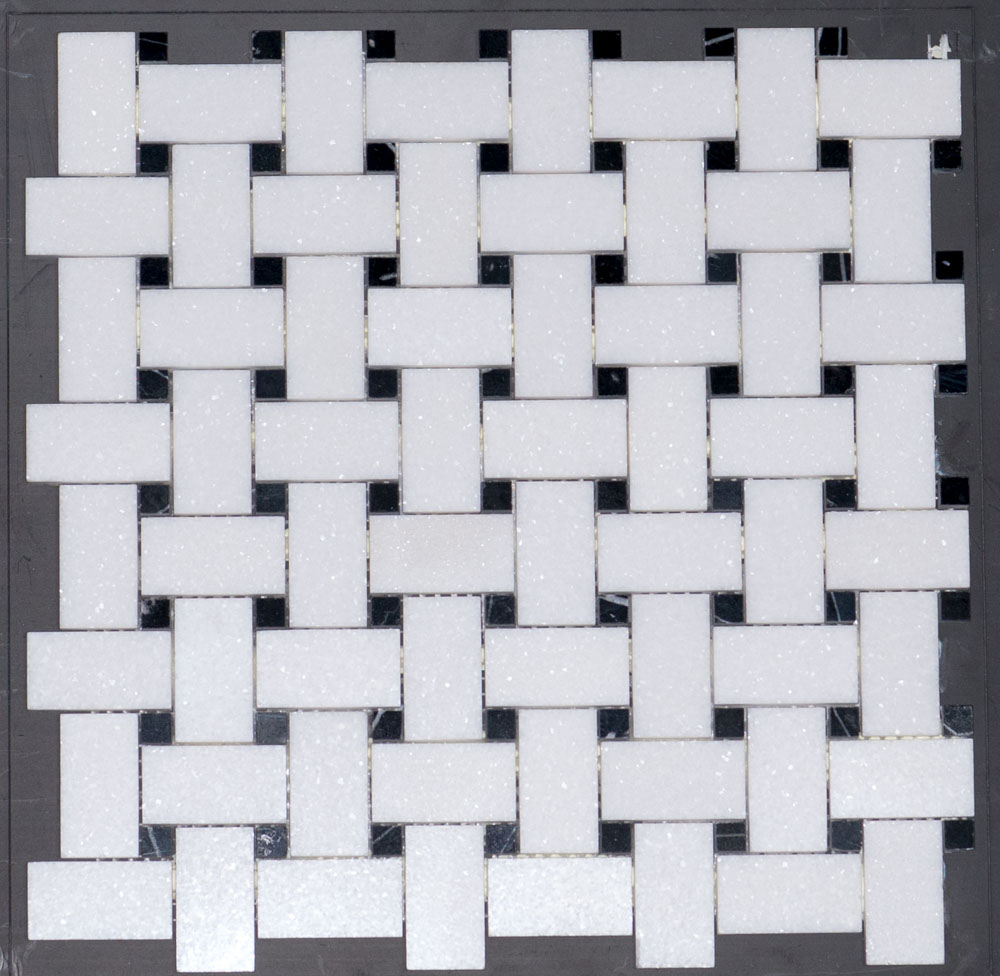 MBW119 MEDIUM BASKET WEAVE WITH 1MM GAP THASSOS + BLACK DOT POLISHED SHEET SIZE 12.12″ X 12.12″ =1.02SF/ PER PCS SOLD BY THE PCS