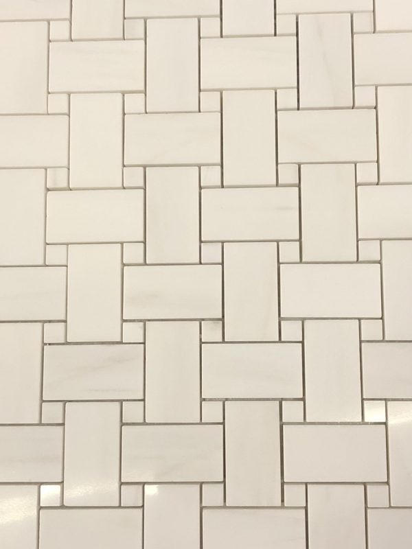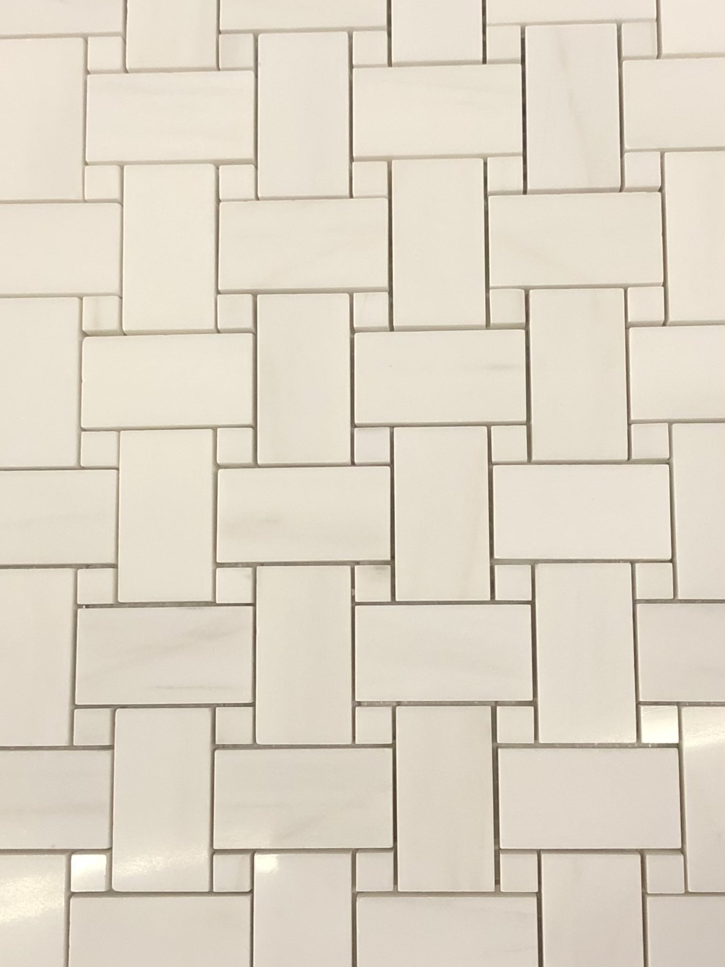 MBW122 MEDIUM BASKET WEAVE WITH 1MM GAP DOLOMITE POLISHED WITH DOLOMITE DOT POLISHED SHEET SIZE 12.12″ X 12.12″ =1.02SF/ PER PCS SOLD BY THE PCS