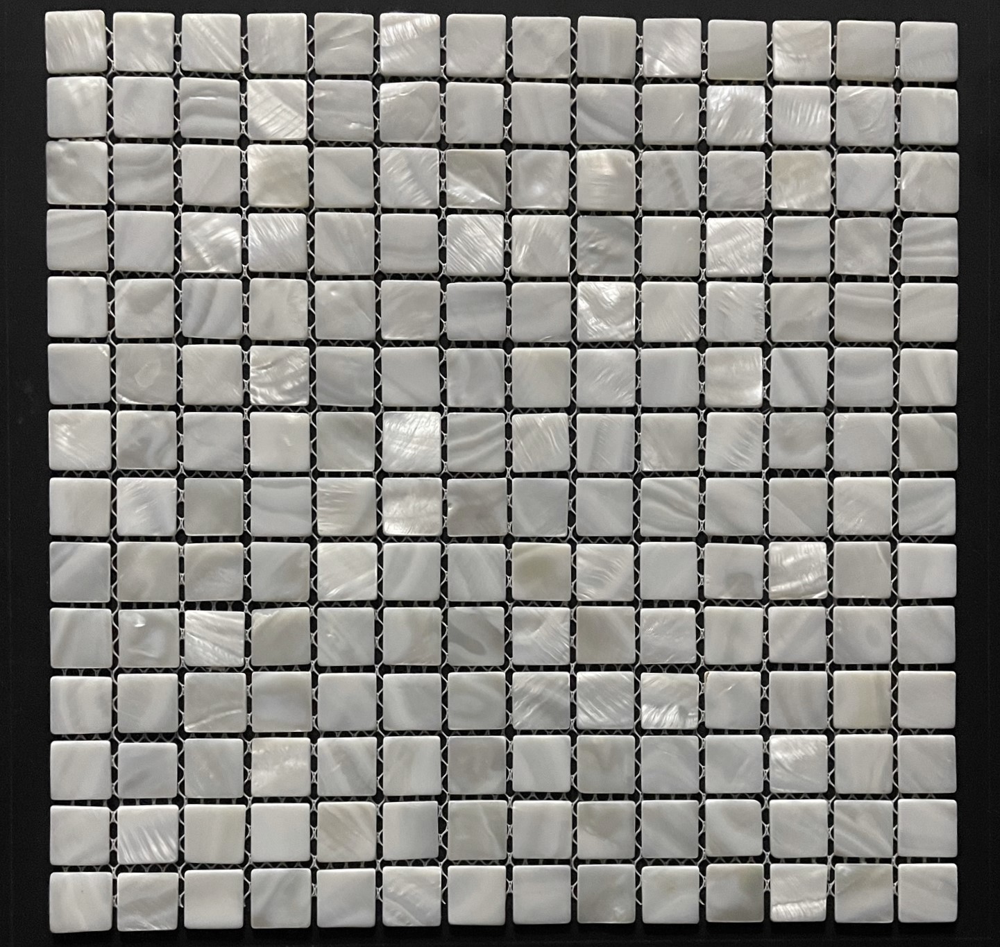 PWJ10-2020 7/8X7/8 SUPER WHITE PEARL 2MM JOINT ON MESH 12X12 = 1SF SOLD BY THE SHEET
