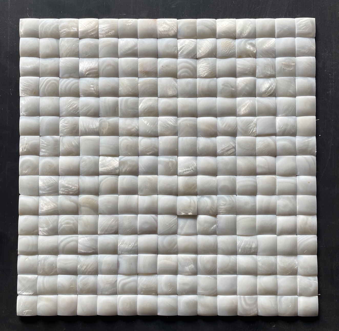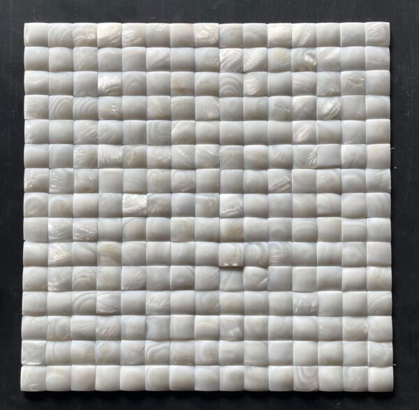 PWT02-2020-3D 7/8 X 7/8 3D SUPER WHITE PEARL TIIGHT JOINT ON MESH 11 ¾” X 11 ¾”=.95SF SOLD BY THE SHEET