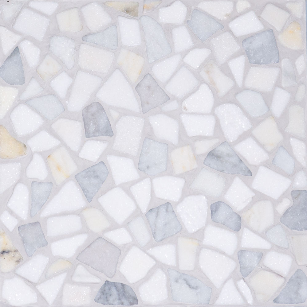 RIVERROCK BLENDS (TUMBLED) CARRARA,THASSOS,CALACATTA 11 1/16″ X 11 1/16″ = 0.85 SF PER SHEET