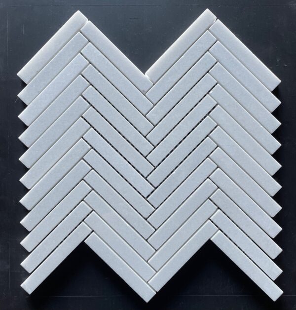 POLISHED THASSOS EXTRA 5/8X4 HERRINGBONE MARBLE MOSAIC 10 1/16” X 11 ¼” = .79SF SHEET SOLD BY THE PCS